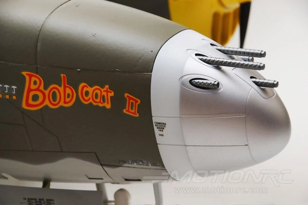 The stock PNP version is equipped with two 3748 brushless outrunner motors and two 12×7 3-blade counter-rotating propellers for the perfect scale appearance. With the recommended 4S 14.8v 5000mAh (one battery per side or a single battery with your series adapter), the P-38 boasts sufficient power for large consecutive loops and a level top speed of 81mph. An optional “Upgrade Kit” can be purchased separately to obtain a level top speed of 94mph; click the Upgrades tab above. For your convenience, a striking “Bobcat II” livery is professionally pre-applied at the factory. Additional decal sets are available for purchase for pilots wanting to refinish and customize their aircraft with other liveries.
