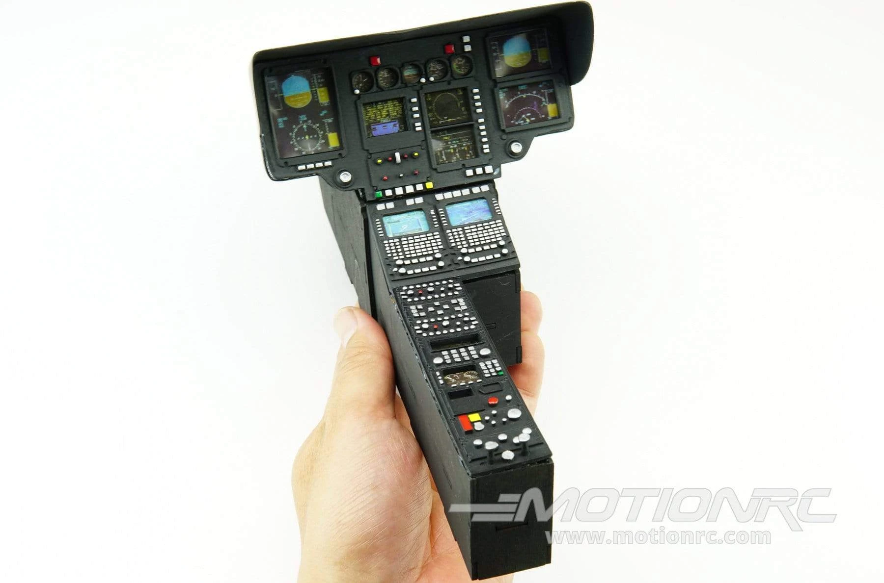 This kit comes with a fully illuminated scale detail cockpit with illuminated dashboard, joysticks, rudder pedals, aerials, windshield wipers and more. Full rear cabin interiors are included (not installed). Floor and ceiling details can be crafted so once the interiors are installed you have an impressively scaled cockpit/interior.