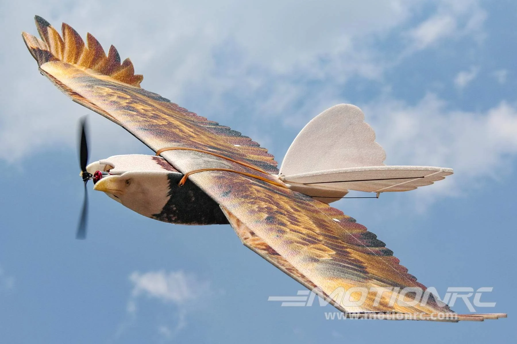 This Bald Eagle is the first in Skynetic’s new “Avian” line of RC airplanes that are designed to represent real birds from nature. Add something truly unique to your aircraft hangar with this 1500mm wingspan Bald Eagle. Constructed from durable EPP foam that is highly resistant to dings and scuffs, this airplane-disguised-as-a-bird is ideally suited to intermediate flyers looking for relaxed flying characteristics in a seldom seen platform. Easy assembly can be completed within one evening using basic hobby materials. With its realistic, highly detailed, UV color printed surfaces, be advised that real birds may flock toward your Skynetic Bald Eagle as it patrols the skies!