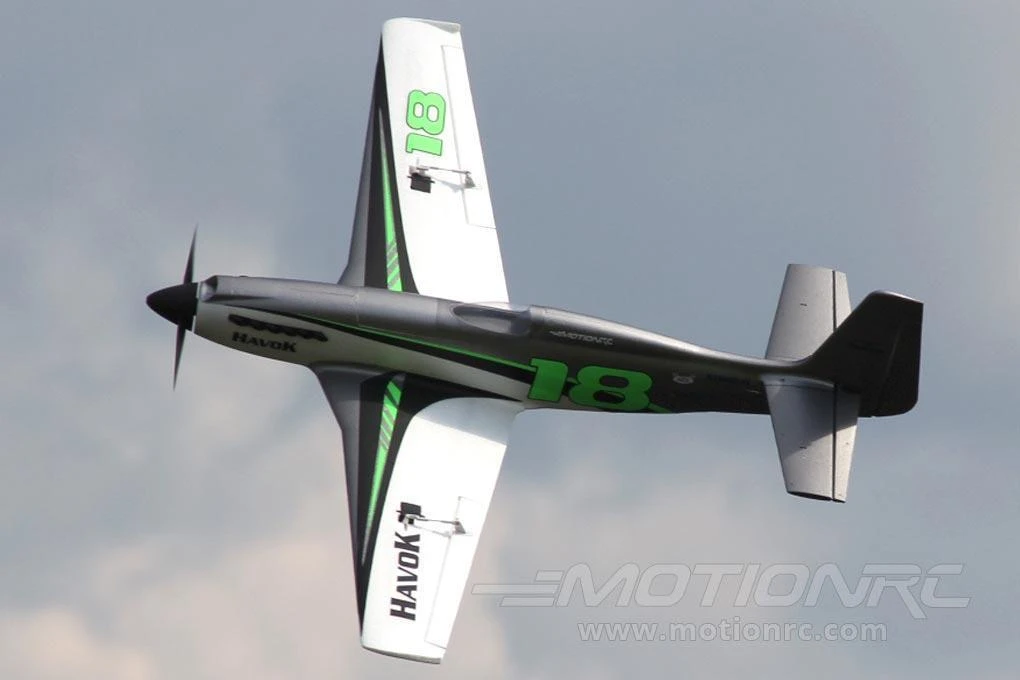 ![]() | Dependable Electronics and Hardware Class-leading servos, ESC, and brushless motor power the Havok through the skies. Fly with confidence throughout this race plane’s wide aerobatic flight envelope. |