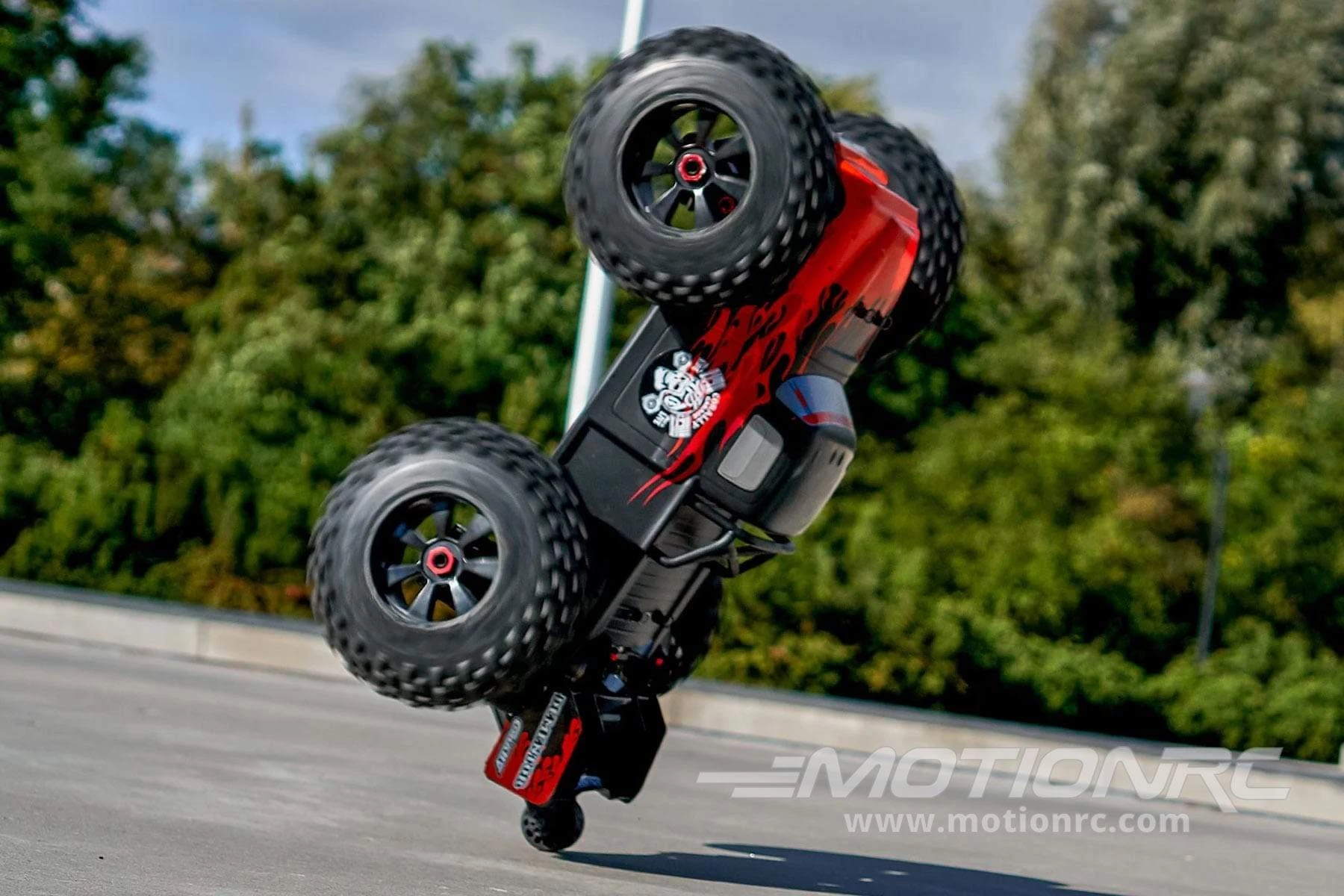 With a super-durable, all-metal four-wheel drivetrain, fully independent suspension, steel geared differentials, short wheelbase racing chassis and aerodynamic racing design, the 1/8 scale Dementor is a top shelf stunt basher truck that is most importantly backed by Motion RC’s world-renowned Customer Service and Spare Parts Support.