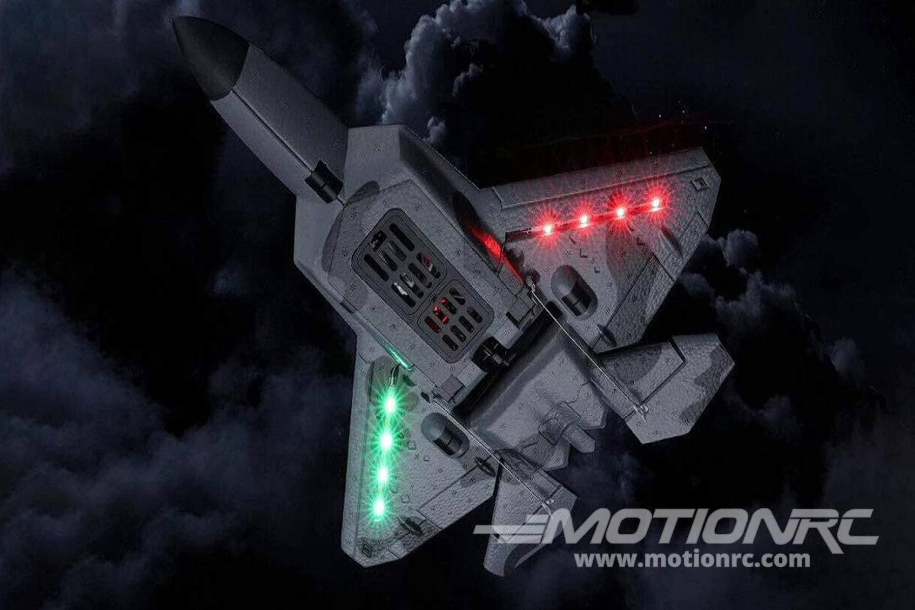 The XK A180 F-22 RTF is a great introductory jet model aircraft for beginners due to its built-in stability system (3D/6G) that supports smooth flights and resistance to crashes.